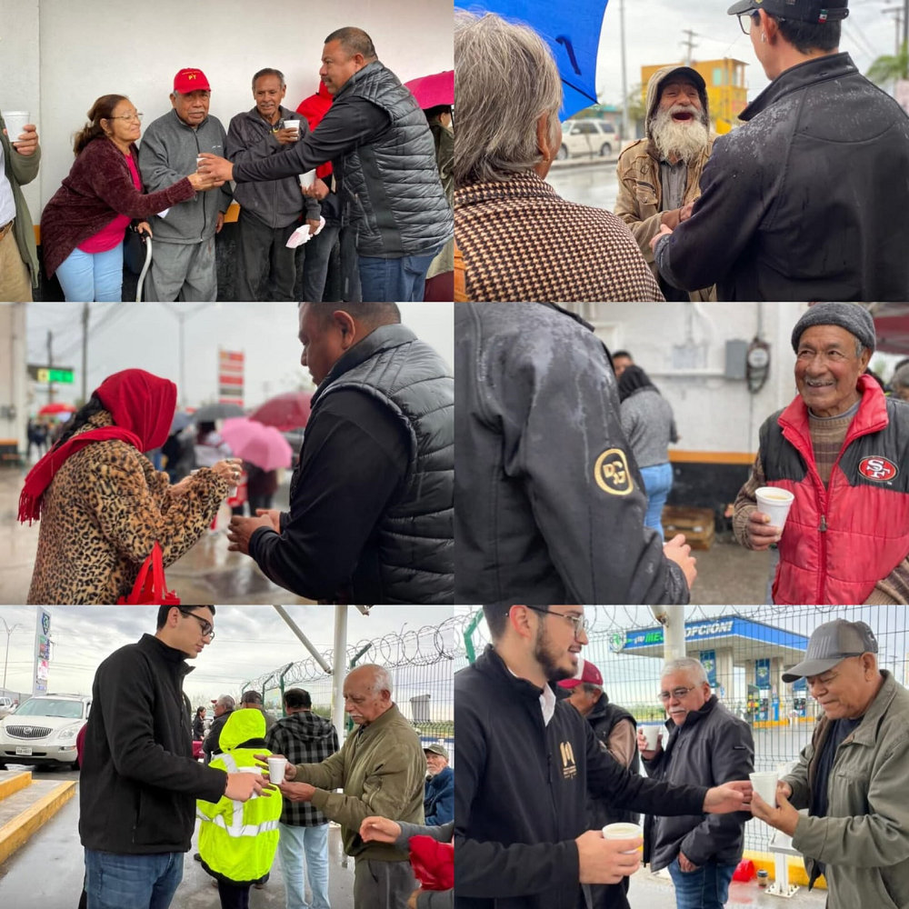 Por instrucción del alcalde de Matamoros, Beto Granados, en una mañana marcada por las lluvias y durante la entrega correspondiente a las letras “P” y “Q”, personal de la Secretaría de Bienestar Social llevó café caliente a las personas adultas mayores que acudieron a realizar sus trámites en las sucursales del Banco del Bienestar Sexta, Villa Madrid y Ejido Galaneño.