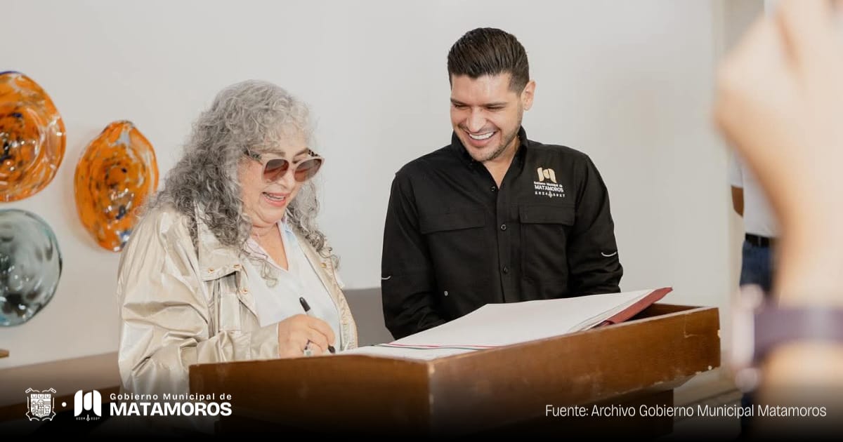 La reconocida cantante Amanda Miguel firmó el Libro de huésped distinguido de Matamoros, gesto con el que expresó su agradecimiento por el cariño y las muestras de afecto recibidas durante su presentación en el cierre del Festival Internacional de Otoño.