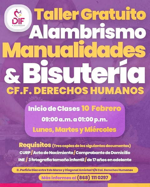 Leer másCon el objetivo de brindar herramientas que permitan a las familias matamorenses emprender y mejorar su economía personal, el Sistema DIF Matamoros anunció la apertura del nuevo Taller Gratuito de Alambrismo, Manualidades y Bisutería. La Lic. Ana Ariceaga de Granados, […]