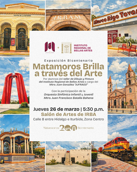 ✨🖌️ El arte también cuenta nuestra historia, y esta vez podrás vivirlo en la inauguración de la exposición “Matamoros Brilla a través del Arte”, una muestra que reúne el talento de alumnos del taller de dibujo y pintura del Instituto Regional de Bellas Artes Matamoros.