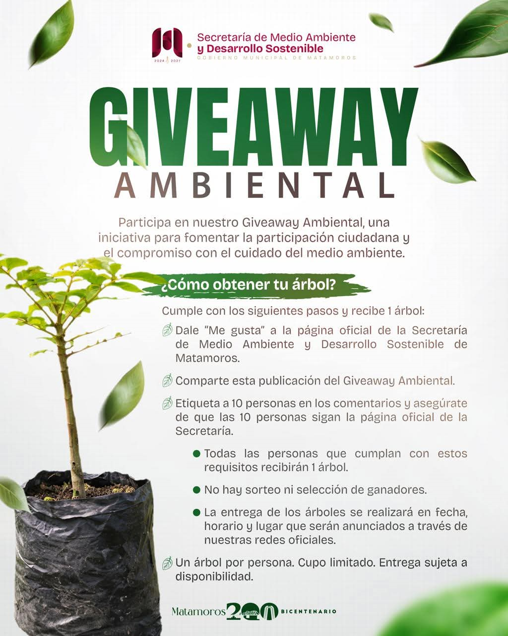 Gobierno de Beto Granados impulsa Giveaway Ambiental para fortalecer un Matamoros más verde