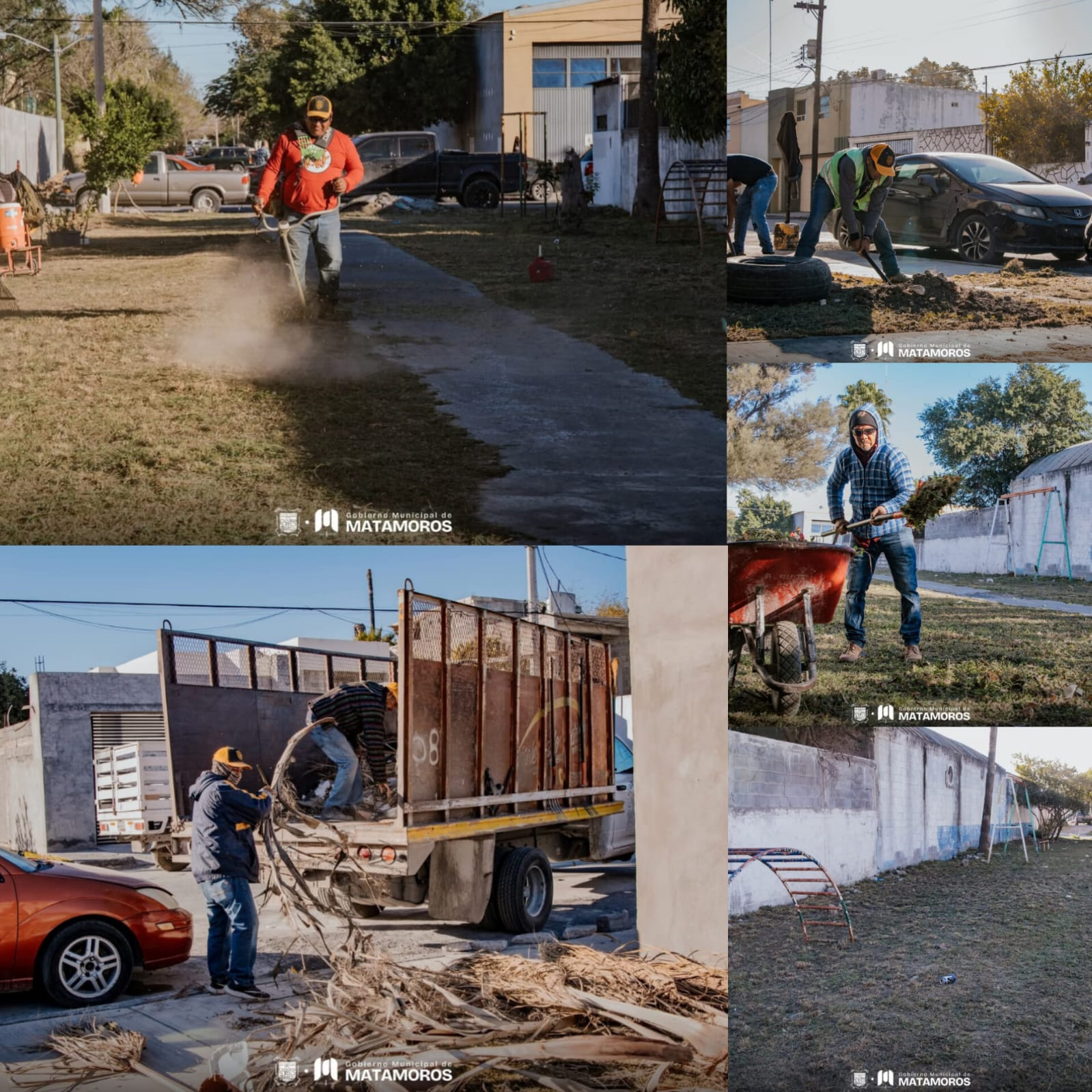 En esta zona se desarrollan labores de limpieza, deshierbe y acondicionamiento del área que rodea los juegos infantiles, con el objetivo de conservar un espacio adecuado para el uso comunitario de niñas, niños y familias, como parte del Renacimiento de Matamoros.
