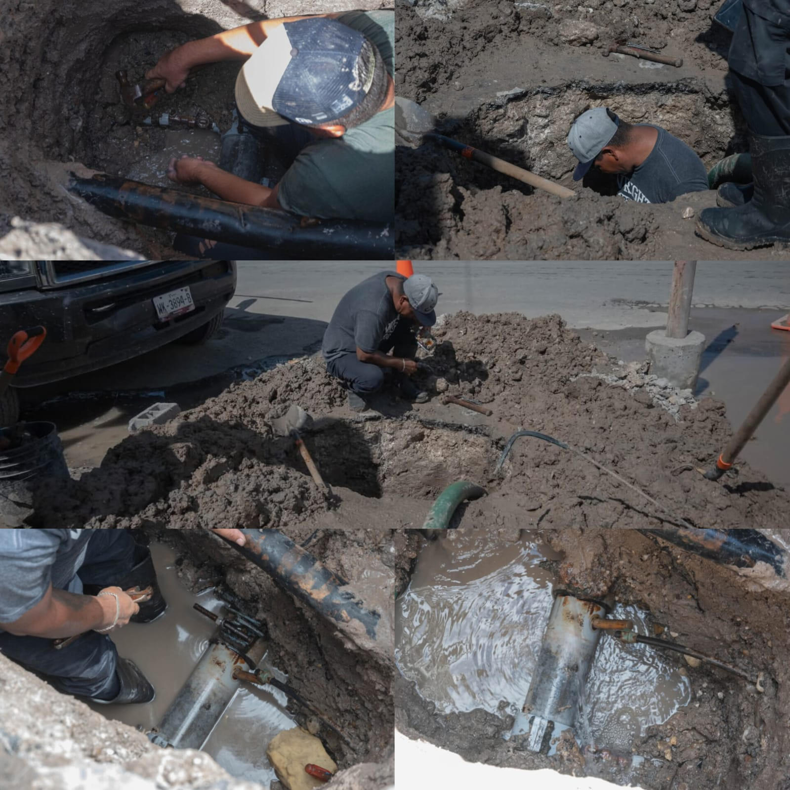El Gobierno de Matamoros presidido por el alcalde, Beto Granados, a través de cuadrillas de la Junta de Aguas y Drenaje, realizó la reparación de una fuga de agua potable en la colonia Las Granjas.