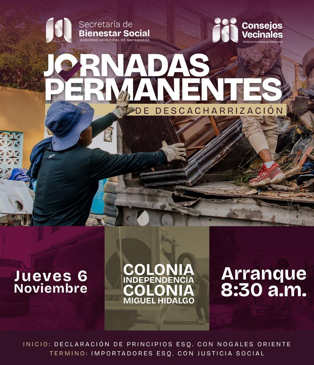 Las jornadas permanentes de descacharrización continúan llegando a más colonias de Matamoros, reforzando las acciones del Gobierno Municipal que encabeza el alcalde Beto Granados para mantener una ciudad más limpia y saludable.