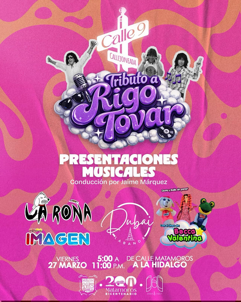 Este viernes 27 de marzo se vivirá una gran Callejoneada en la Calle 9 con Tributo a Rigo, música en vivo y mucho ambiente.